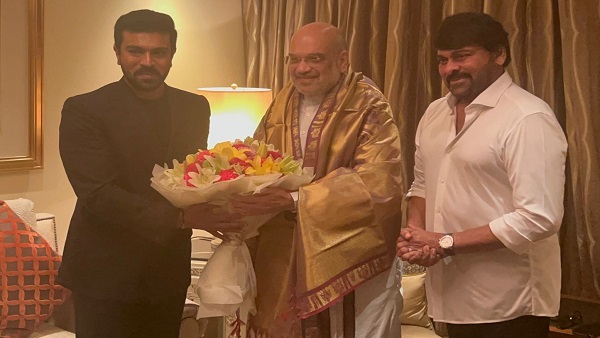 Ram Charan, who returned to New Delhi on Friday after attending the Oscars, met Union Home Minister Amit Shah along with his father and Tollywood Megastar Chiranjeevi.
