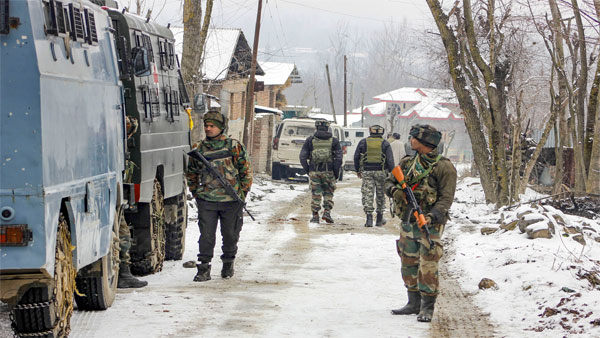New Delhi, Jan 13: Three "most wanted" Hizbul Mujahideen terrorists were killed in an encounter with security forces in the Tral area of Jammu and Kashmir's Pulwama district, police said.