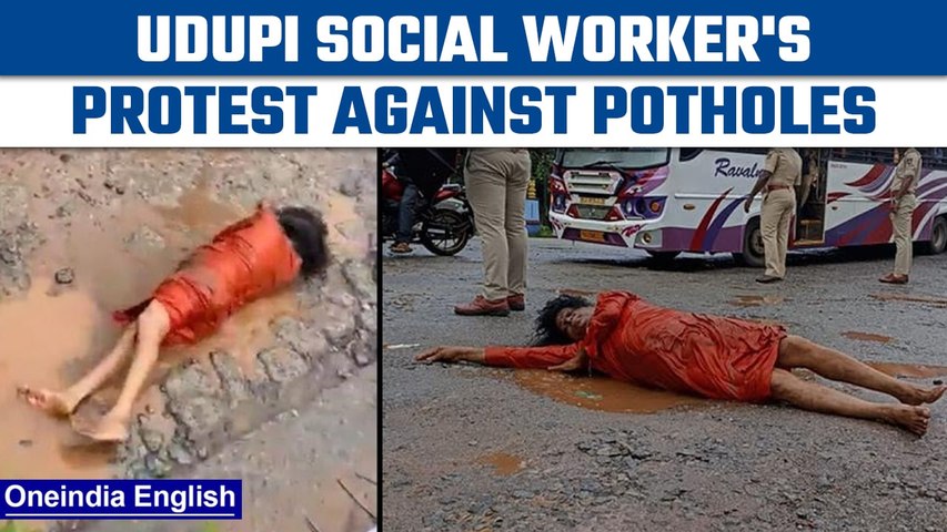 Mangaluru, Sep 15: In a novel form of protest, social worker Nityananda Volakadu of Udupi rolled on the road in Udupi to protest against potholes and the pathetic conditions of roads in the district. He bagan 'Urulu Seve' after offering 'aarti' to the potholes of Indrali bridge in the city.