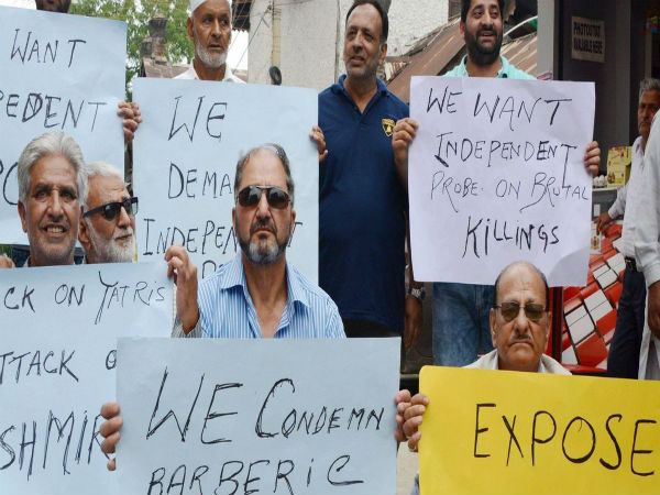 Similarly, scores of people of the Valley, who are often called as "stone pelters" and "terrorists" came out in the open with placards in hands to protest against the killings of Amarnath pilgrims.