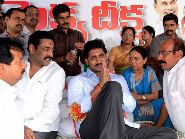 YSR Congress chief Jagan led the sit-in at Jantar Mantar. Party leaders and large number of activists participated in the protest to demand that the state should not be divided.