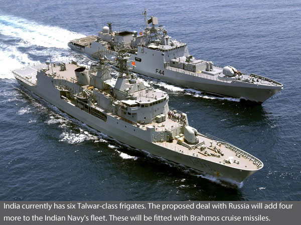 Frigates: India is also set to buy four 'stealth' frigates for the Navy for $4 billion, two to be built in Russia, two in India.