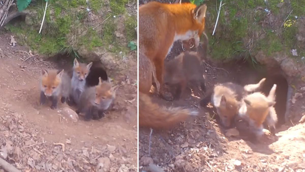 This video of Mama fox and her tiny triplets is lovely