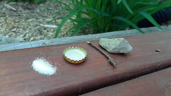 Twitter user Judianna wrote, "mosquito trap. The mosquito lands on the salt, thinking it's sugar. They get thirsty for water, but the cap has tequila in it. The mosquito gets drunk, trips on the stick and bangs its head on the rock."