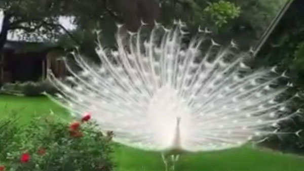 An intriguing image of a white peacock showing off its feathers has gone viral on the social media. The post has already got over 1 lakh views.