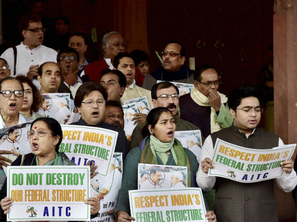 Kolkata, Dec 31: Ruling Trinamool Congress on Wednesday staged protest rallies in West Bengal and burnt symbolic copies of the Centre's land ordinance, which it has described as "black".
