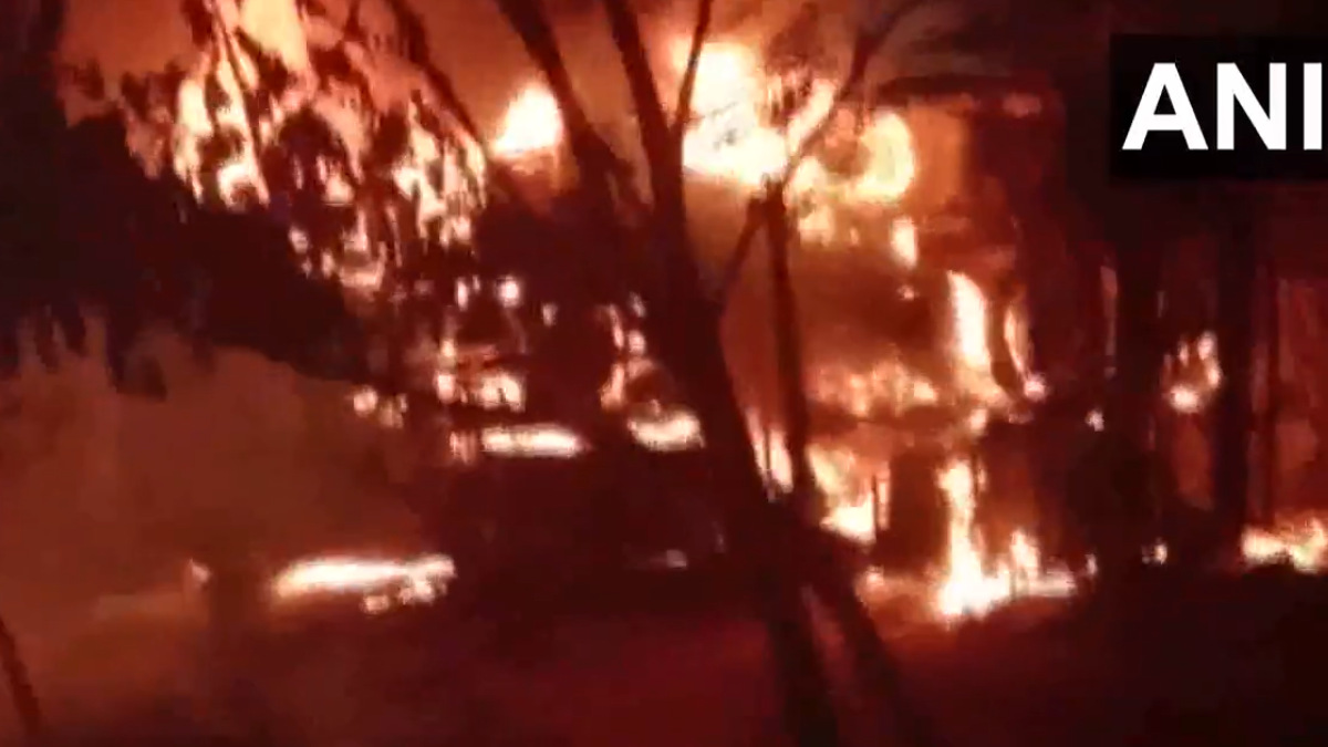 In the visuals shared on social media by ANI, the bus was completely engulfed by huge flames. Three other passengers of the bus, heading to Chittoor in neighboring Andhra Pradesh, sustained injuries and are reported to be safe. It is suspected by the police that the driver was speeding or may have dozed off at the wheel, leading to the loss of control of the vehicle.