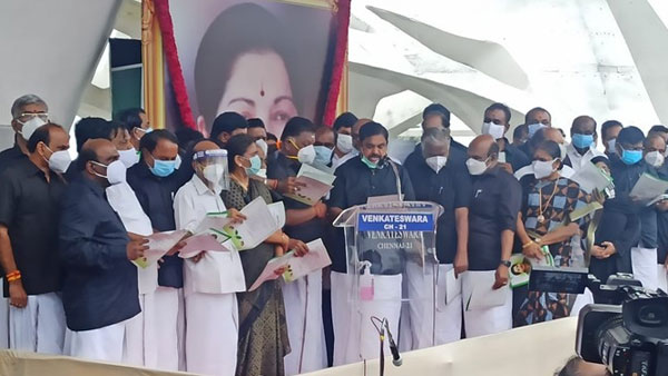 Later, Panneerselvam administered a pledge to the members to fulfill the dream of Jayalalithaa, saying she had dedicated 34 years of her life to the party and the people.