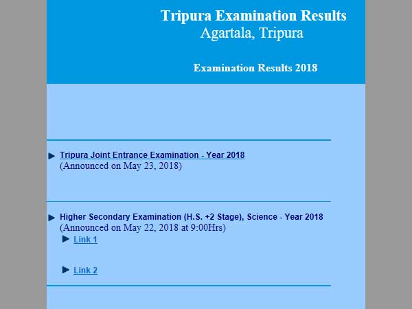 The results for class 12 science was declared on May 22, 2018. The result was announced at a press conference in the Conference Hall of the Board. TBSE had earlier rescheduled Class 12 examinations to avoid a clash with the ensuing assembly elections. The state went to polls on February 18 and the results were declared on March 3. The Class 12 examinations, which were scheduled to begin on March 5, commenced on March 8 in view of the elections.