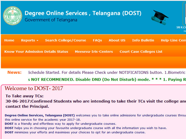 TS DOST UG degree 2nd Seat Allotment 2017 has been released. The second phase registration and web counselling for admissions into degree course through the Degree Online Services, Telangana (DOST) will be from June 25 to 30.