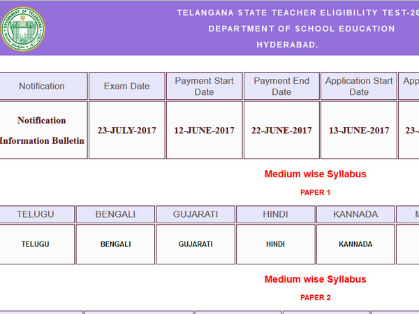 - TSPSC TET 2017 detailed notification: June 12