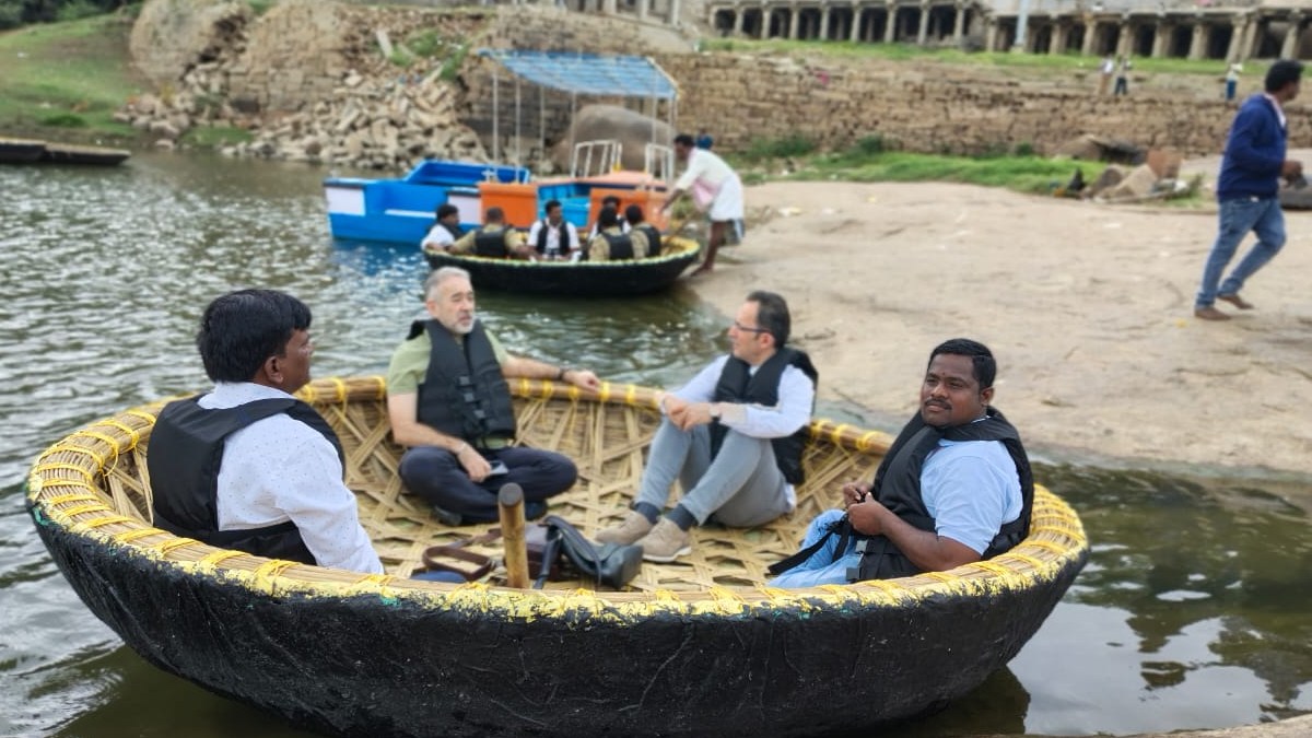 Additionally, the ambassadors took pleasure in a coracle ride at Chakratirtha, embracing the natural beauty surrounding Hampi, before the rain intensified, adding a sense of adventure to their visit. Their exploration also included visits to notable monuments such as Kamal Mahal, Queen's Bath, and Mahanavami Dibba, each site offering a glimpse into the rich historical and architectural legacy of Hampi.