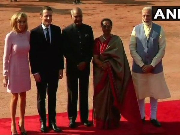 French President Emmanuel Macron was given a ceremonial welcome at Rashtrapati Bhawan on Saturday. After inspecting a guard of honour and meeting with other officials, Macron said, "I am very happy and proud of this visit. I thank the President (Kovind) and Prime Minister (Modi) for this welcome."