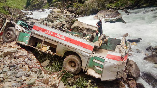The police bus carrying 37 ITBP personnel and two policemen fell into a deep gorge between Chandanwari and Pahalgam, a police official said.