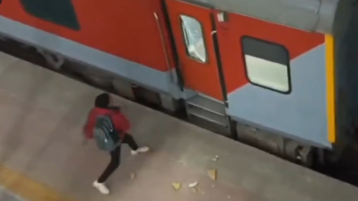 The clips also showed some people throwing stones and hitting at the doors of a train, and trying to force open them.