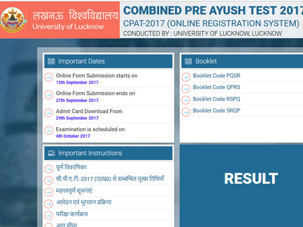 The UP CPAT 2017 results have been declared. The results for the Combined Pre Ayush Test is available on the official website.