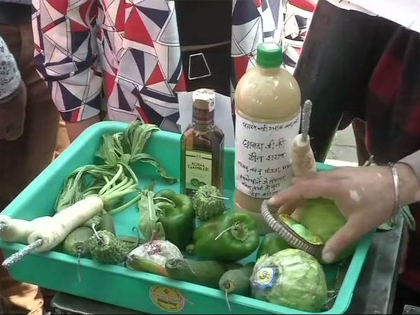 New Delhi, Nov 7: Sadar Bazar Welfare Association in the national capital is staging a protest against the Supreme Court order on green crackers, by putting firecrackers inside green vegetables.