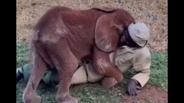 In the viral clip, a baby elephant can be seen cuddling with its keeper. The duo can be seen having a fun time together. The smile on the man's face and the baby elephant's gestures will surely make your day.