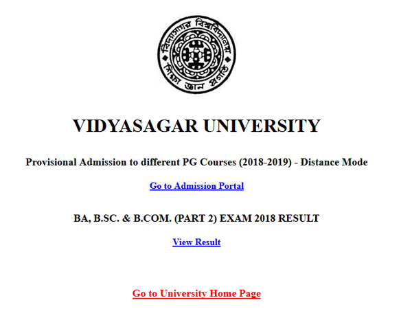 The Vidyasagar University Bachelor of Science (B.Sc), Bachelor of Arts (B.A) and Bachelor of Commerce part 2 exam results can also be accessed from the third party websites. The University has released the degree part 2 results on the official website of the varsity of the candidates who have attended the exam for their third year honours course. The results are available on vidyasagar.ac.in.