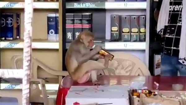 Viral video: Monkey enters MP Liquor shop drinks whiskey like a pro