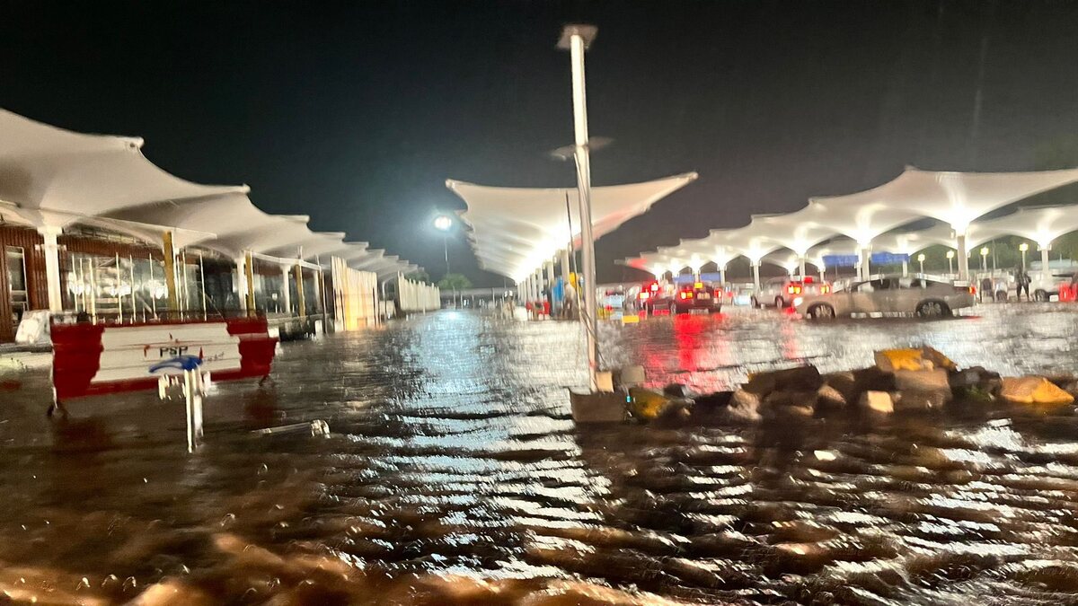 Several social media users took to Twitter to show the airport flooded due to incessant rainfall, with runways and terminal areas submerged under water.