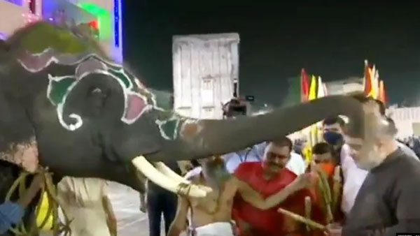 In the video, a smiling Amit Shah fed the temple elephant, in return, the Pachyderm is seen blessing the Minister