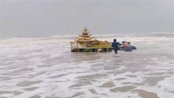 Watch: Gold-coloured chariot washes ashore in Andhra's Srikakulam amid Cyclone Asani