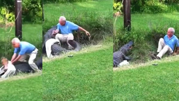 Watch: Shocking video of an old man trying to control an Alligator with a shirt goes viral