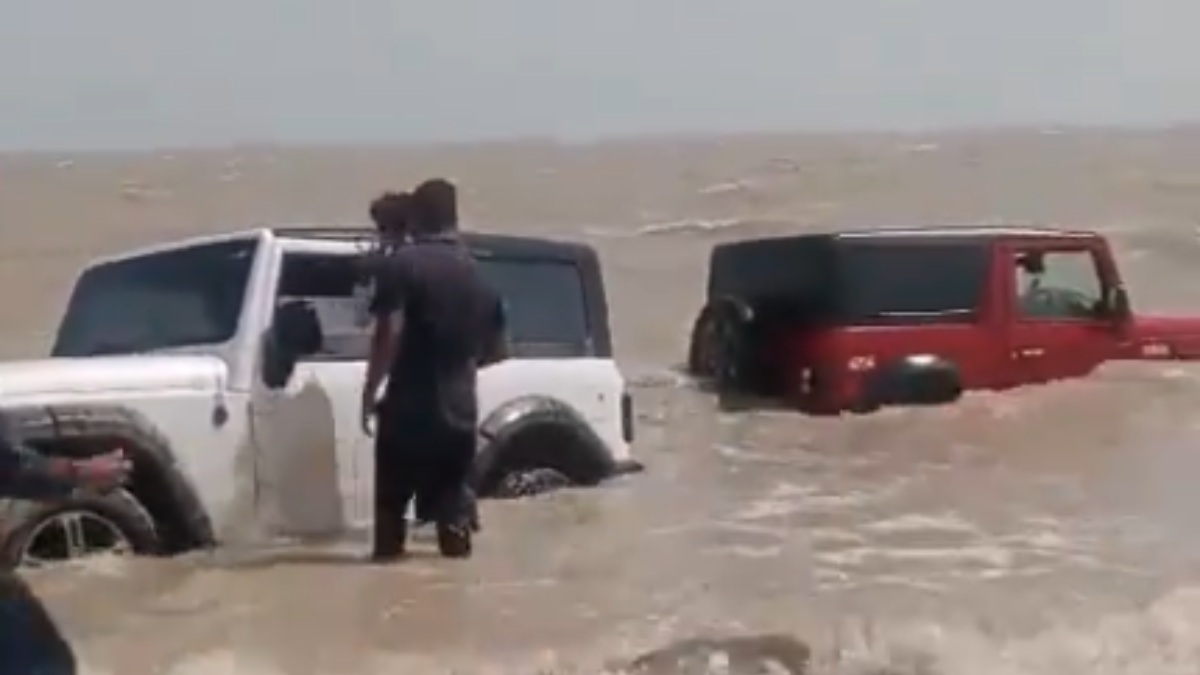 The police stated that one of the vehicles' drivers had been detained and was being questioned. Authorities revealed that Karan and Paresh, both college students residing in Bhadreshwar, found themselves in a difficult situation after driving the Thar cars into deep waters along the coastline in Mundra, Kutch, while attempting to film a reel.