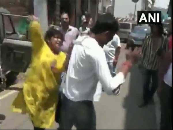 A 46-second video of the incident, tweeted by ANI on Wednesday morning, first shows a man beating up the man in question with a stick. Soon after, the woman takes over and launches a volley of blows on him and beats him up with a slipper.