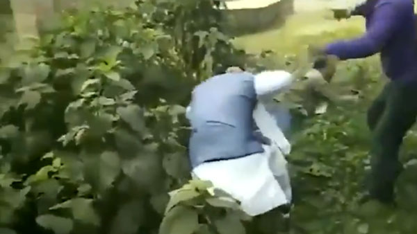 TV footages showed Majumdar, who is also the state BJP vice-president, being beaten up, kicked and pushed into a bush by miscreants at Phipulkhola area of Nadia district.
