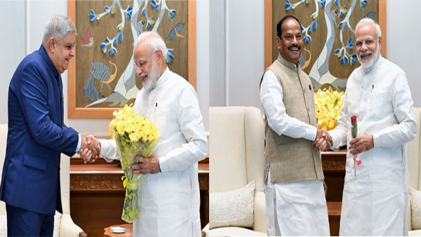 New Delhi, Aug 20: West Bengal Governor Jagdeep Dhankar and Jharkhand Chief Minister Raghubar Das called on Prime Minister Narendra Modi on Tuesday.
