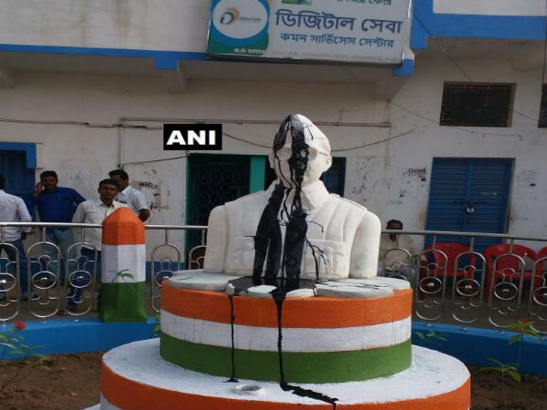 The statue was supposed to be unveiled on Independence Day at Panchra village but was smeared with coal tar and the face was partly damaged. The statue was installed in the Panchra village panchayat office compound for the Independence Day function.