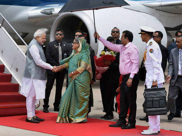 New Delhi, June 6: Prime Minister Narendra Modi arrived in Bangladesh on Saturday for a two-day tour. He was received at the airport by his Bangladeshi counterpart Sheikh Hasina. West Bengal Chief Minister Mamata Banerjee reached Dhaka ahead of PM Modi's arrival. [Follow PM Modi's visit to Bangladesh]