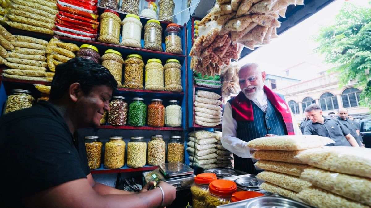 During his visit to Jhargram, PM Modi made a surprise stop at a small roadside stall and tasted jhalmuri, a popular local snack.