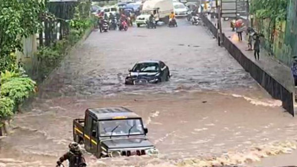 The 13-second video clip showed a man driving Mahindra Bolero pick-up truck without any fuss even as a Jaguar sedan appears to be struggling in the knee-deep water. The incident happened yesterday at an underpass in Navi Mumbai's Airoli.