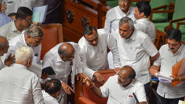 The H D Kumaraswamy government faces a crucial trust vote at 11 am on Thursday.