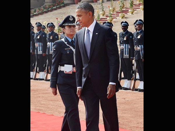 Wing Commander Thakur walked Obama for the inspection of the tri-service guard of honour. This comes as 'nari shakti' (woman power) is the theme for Republic Day parade this year where Obama is the chief guest.