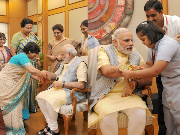 Narendra Modi celebrates Raksha Bandhan as women, children tie rakhi to him