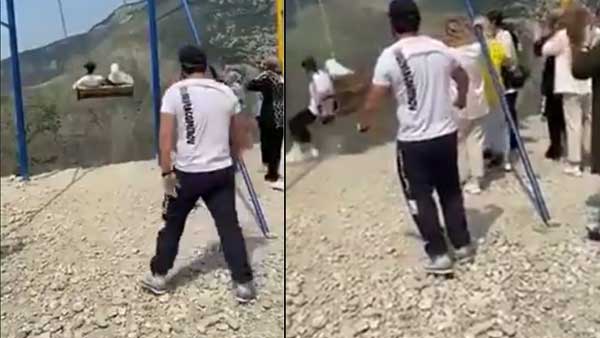 According to reports, the incident took place in Sulak Canyon in the Russian Republic of Dagestan. In the video, two women can be seen taking a swing ride which is perched right on the edge of a cliff. After they took their seats, a man from behind can be seen pushing the swing.