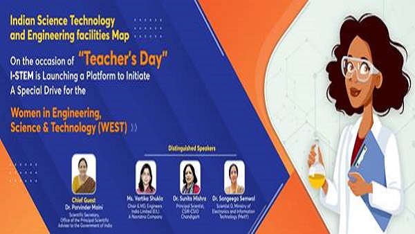 New Delhi, Sep 06: Women in Engineering, Science, and Technology (WEST), a new I-STEM (Indian Science Technology and Engineering facilities Map) initiative called "Women in Engineering, Science, and Technology (WEST)" was launched by Dr Parvinder Maini, Scientific Secretary, Office of the Principal Scientific Adviser (PSA) to the Government of India on 5th September 2022.