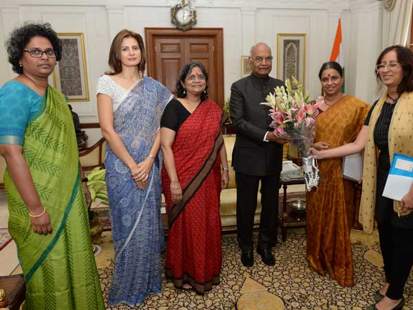 New Delhi, September 19, 2017: A delegation of five members, representing various women's organisations, met Hon'ble President of India, Ram Nath Kovind, at the Rashtrapathi Bhawan for the speedy passage of the women's reservation bill. The delegation updated President Kovind on the present status of women in governance in India and sought his support for gender equality in politics and the immediate passage of the bill. The President extended his full support for the passage of the bill.