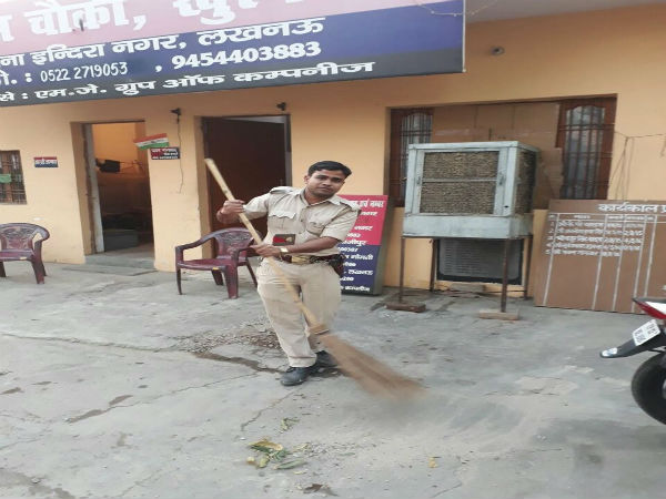 Welcome to new Uttar Pradesh, where police officials don't shy away from picking up brooms to clean their workplaces.