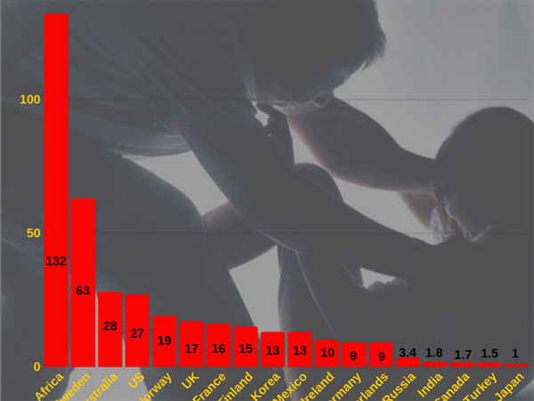 New Delhi, Jan 31: The United Nations Office on Drugs and Crime (UNODC) has released country-wise statistics on rape crime rates (incidents per 100,000 population).