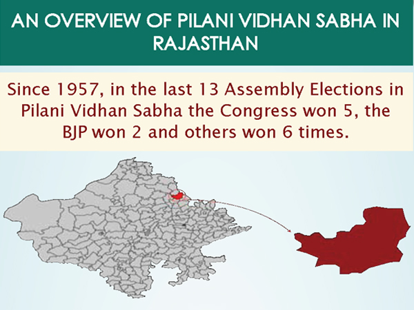 BJP's Sunderlal won the election in the 2013 assembly elections in Pilani assembly seat of Rajasthan. Congress candidate Madan Lal faced defeat in last assembly election. Sunderlal of BJP won by 13,996 votes. This seat is reserved for Scheduled Castes candidates. The main fight for Pilani Assembly Seat is between Kailash Meghwal of BJP and J.P. Chandelia of Congress Party.