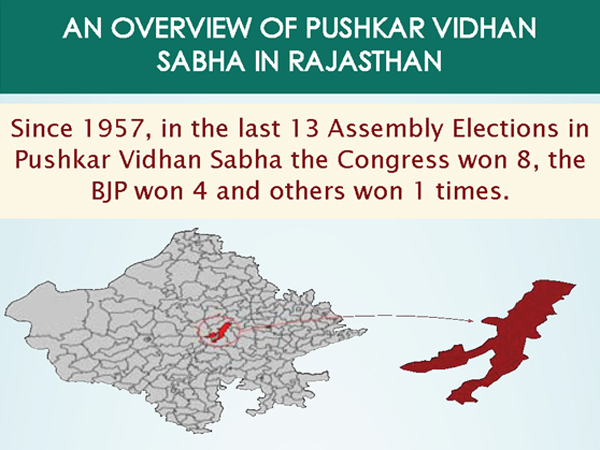 "Pushkar Assembly constituency (99) is located in Ajmer district of Rajasthan and comes under the Ajmer Lok Sabha constituency.Pushkar (Assembly constituency) is one of constituencies of Rajasthan Legislative Assembly. In the 2013 assembly elections, Congress candidate Naseem Akhtar Insaf won against BJP's Suresh Rawat by 41,290 votes."
