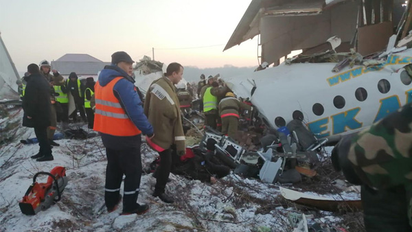 Kazakhstan, Dec 27: A Plane with 100 people including five crew members on board crashes in Kazakhstan, emergency services at the site near Almaty airport killing at least fourteen people while at least 35 others survived with injuries. The Bek Air aircraft hit a concrete fence and a two-story building after takeoff from Almaty International Airport.