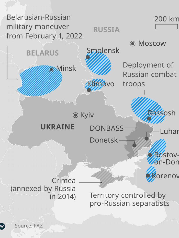 This assessment seems to be shared by about half of the Ukrainian population. According to a recent poll conducted by the Kyiv International Institute of Sociology (KIIS), 48.1% of Ukrainians believe the threat of an invasion is real, while 39.1% don't think an invasion will happen. Another 12.8% of respondents either had no opinion yet or did not want to comment.