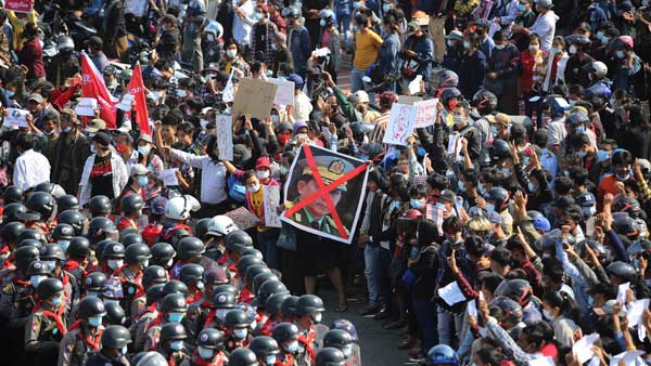 Yangon, Feb 16: Sightings of armored personnel carriers in Myanmar's biggest city and an internet shutdown raised political tensions late Sunday, after vast numbers of people around the country flouted orders against demonstrations to protest the military's seizure of power.