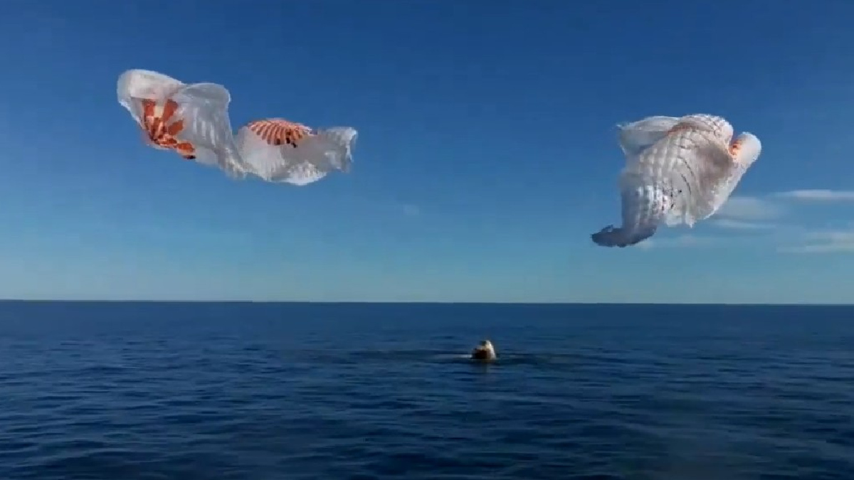 Four parachutes deployed as SpaceX's Dragon capsule splashed down in the sea off Florida, marking the return of Sunita Williams and the Crew-9 team to Earth after spending nine months in space.